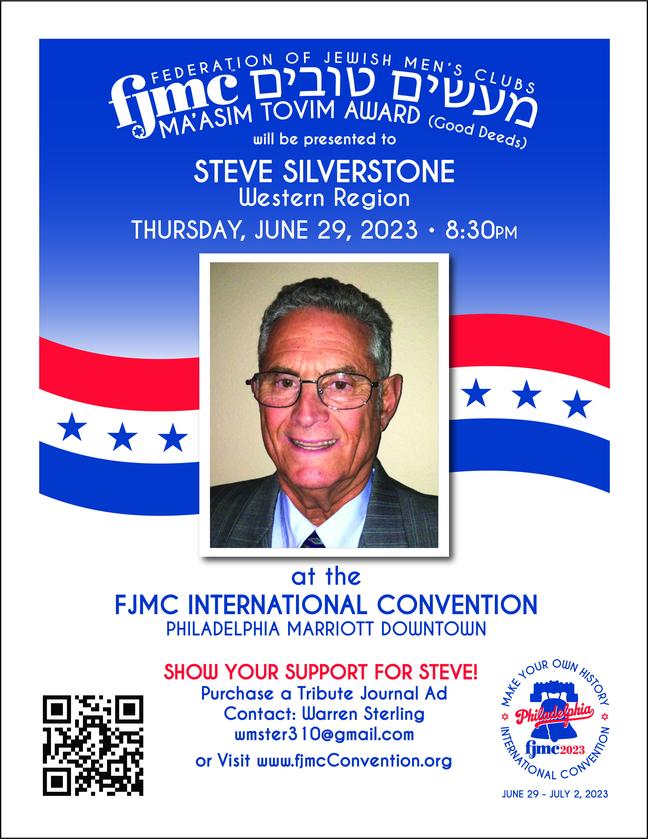 Steven Silverstone was born in Los Angeles and attended Westchester High School. He had his bar mitzvah at Westchester Jewish Congregation which merged with Tikvat Jacob Beth Torah in Manhattan Beach. Steve was active in AZA in high school and became the President of his chapter. At Westchester High School, Steve played some football and was on the swimming team. Steve then attended the University of Southern California (USC) for undergrad and majored in Industrial Engineering. At USC Steve was a member of the Trojan Knights. They were involved in doing card stunts with the fans at USC Football games during the games. Steve is still huge USC Football fan and has season tickets to all the home games. While in college Steve’s fraternity brother had a cousin, Ronnie Gordon who at the time was a freshman at Ohio State University. She joined her father in LA when he was a visiting professor at USC for the summer. Ronnie and Steve met during that trip. During the following winter break Steve took a 3 day train ride to Akron Ohio to see Ronnie. A couple of years later Ronnie transferred to UCLA and lived with her aunt in LA. They married after 3 years of dating and began a family in the LA area. They have two daughters, Cheryl married to Jim Niekamp who live in Atlanta with 3 children and Deborah married to Greg Hersberg who live in Thousand Oaks, California with two children. After undergrad, Steven went to grad school at USC to continue his major of Industrial Engineering. Steve then went to work for Electro Form Inc for 17 years and retired in 2009 from his last job at Northrup Grumman where he was Mission Assurance Manager. We wish Steven Silverstone a hearty Mazel Tov on his being chosen the Ma’asim Tovim Honoree for the Western Region. Throughout his life, Steven was always the one to get involved and make a difference in every synagogue or organization he gets involved in. He is truly a doer of good deeds and has more than earned the recognition to receive the Ma’asim Tovim award from the Western Region. We look forward to honoring him and his fellow Ma’asim Tovim honorees at the FJMC Biannual convention June 29th thru July 3rd 2023 in Philadelphia. |