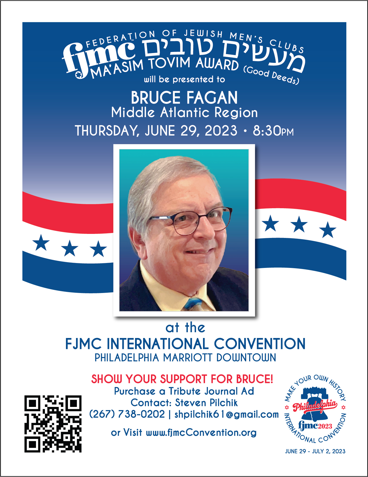 In 2006, Bruce was trained as an FJMC Keruv Consultant to help families and communities welcome intermarried couples, later co-chairing a national training weekend. He is an FJMC Board Member, serves as advisor to two regions, runs the Zoom and web presence for FJMC Webinars and Affinity Groups and has contributed numerous logo designs – including the convention logo and promo video – to FJMC. Bruce is part of the FJMC Inclusion Initiative to help our synagogues embrace underserved community members and still works to embrace intermarried families on the local level. A glutton for punishment, he is also Marketing Co-Chair and a webmaster for the 2023 FJMC Convention.